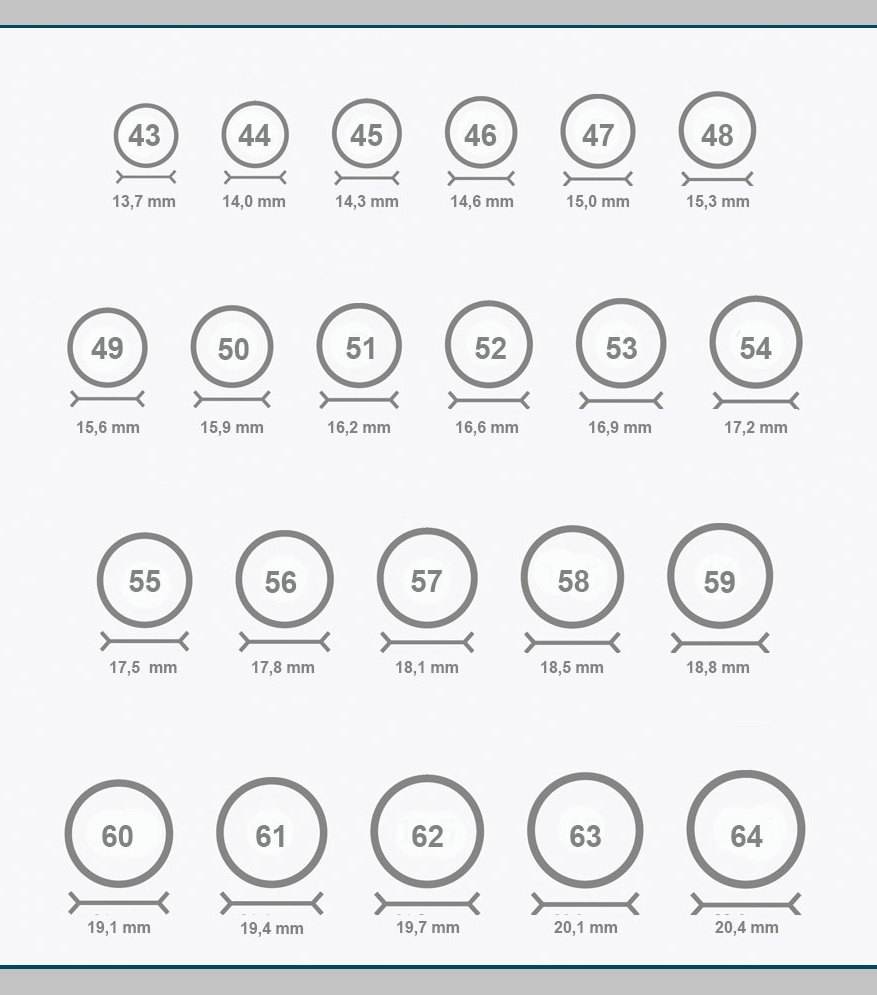 Ringgrösse Beispiel: 16.2 mm x 3.14 = 50.868 = 51 (aufgerundet)